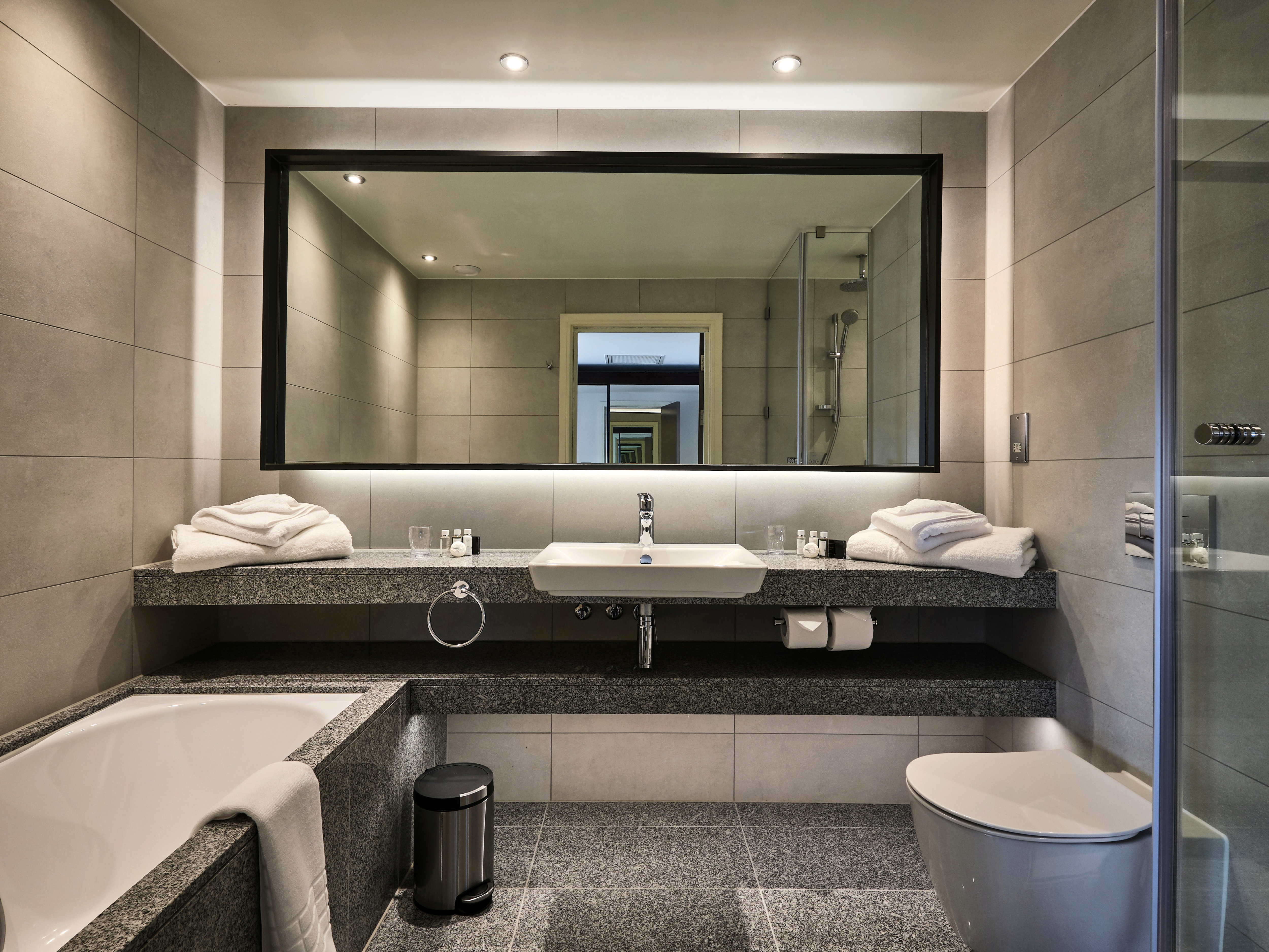 Pamper yourself in the suite’s spacious bathroom, designed to evoke the tranquillity of a luxury spa. A deep-soaking tub with a separate rainfall shower invites you to unwind, while premium amenities and extra-soft bathrobes provide a touch of decadence.