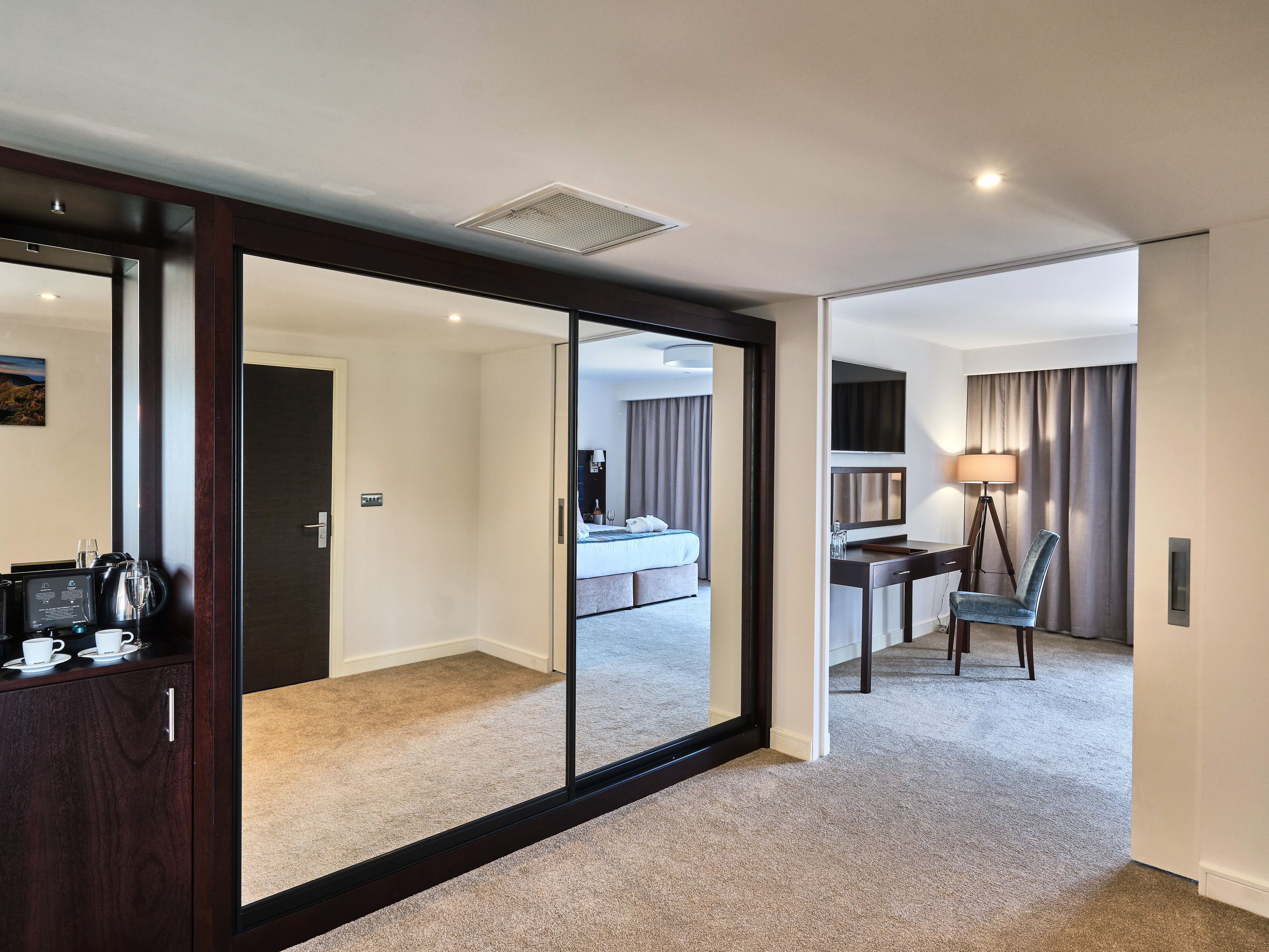Step into a world of indulgence with a Respa super king-sized bed, elevated by the finest linens and Melin Tregwynt wool blankets. Complemented by an expansive living area featuring a plush Chesterfield sofa and an inviting lounge space. Designed for ultimate relaxation, the suite’s layout ensures privacy, comfort, and elegance at every turn.
