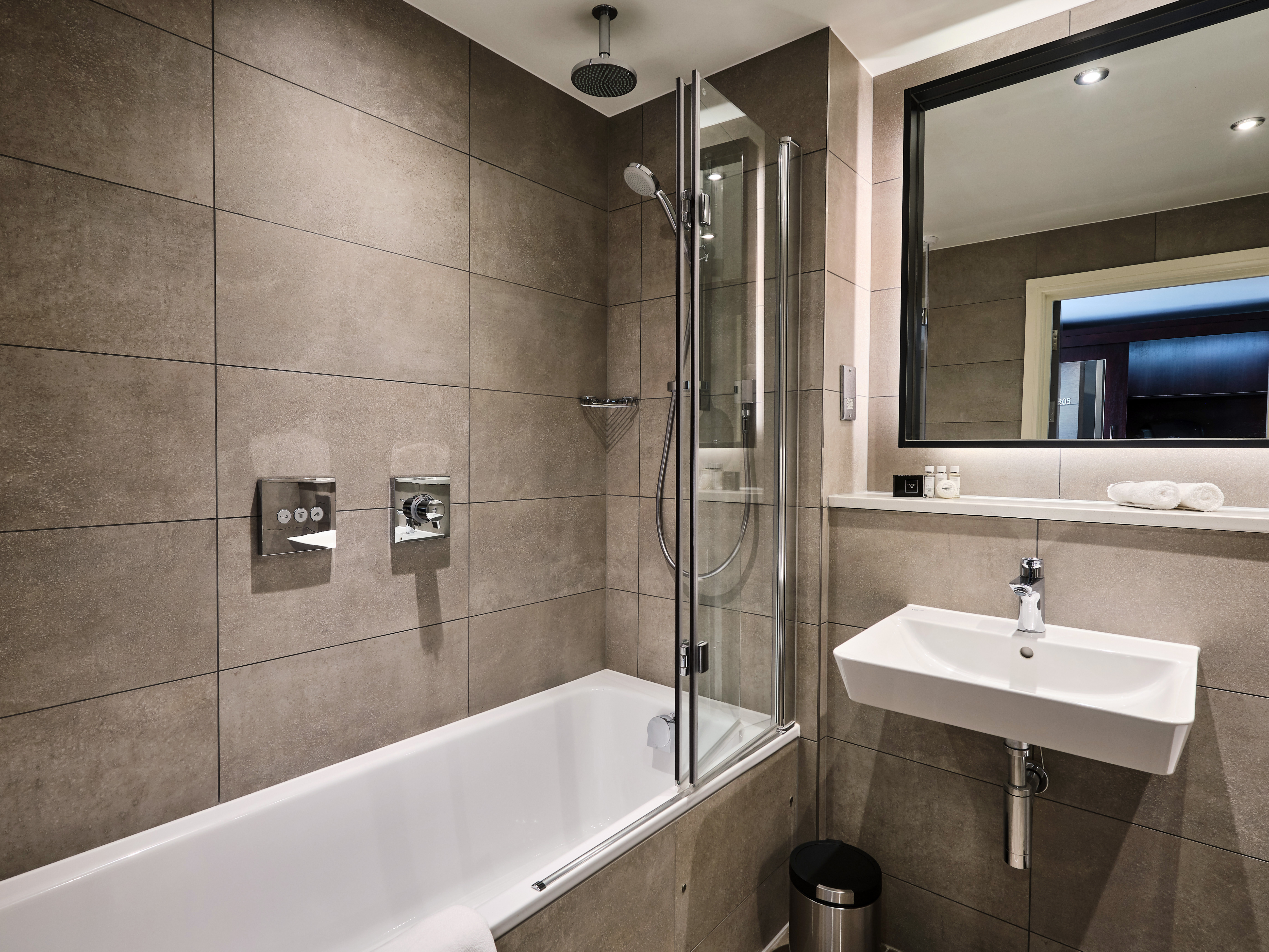 Relax and rejuvenate in our state-of-the-art bathrooms, equipped with a soothing rainfall shower over a spacious bath, luxurious bath products, and extra-soft bathrobes.