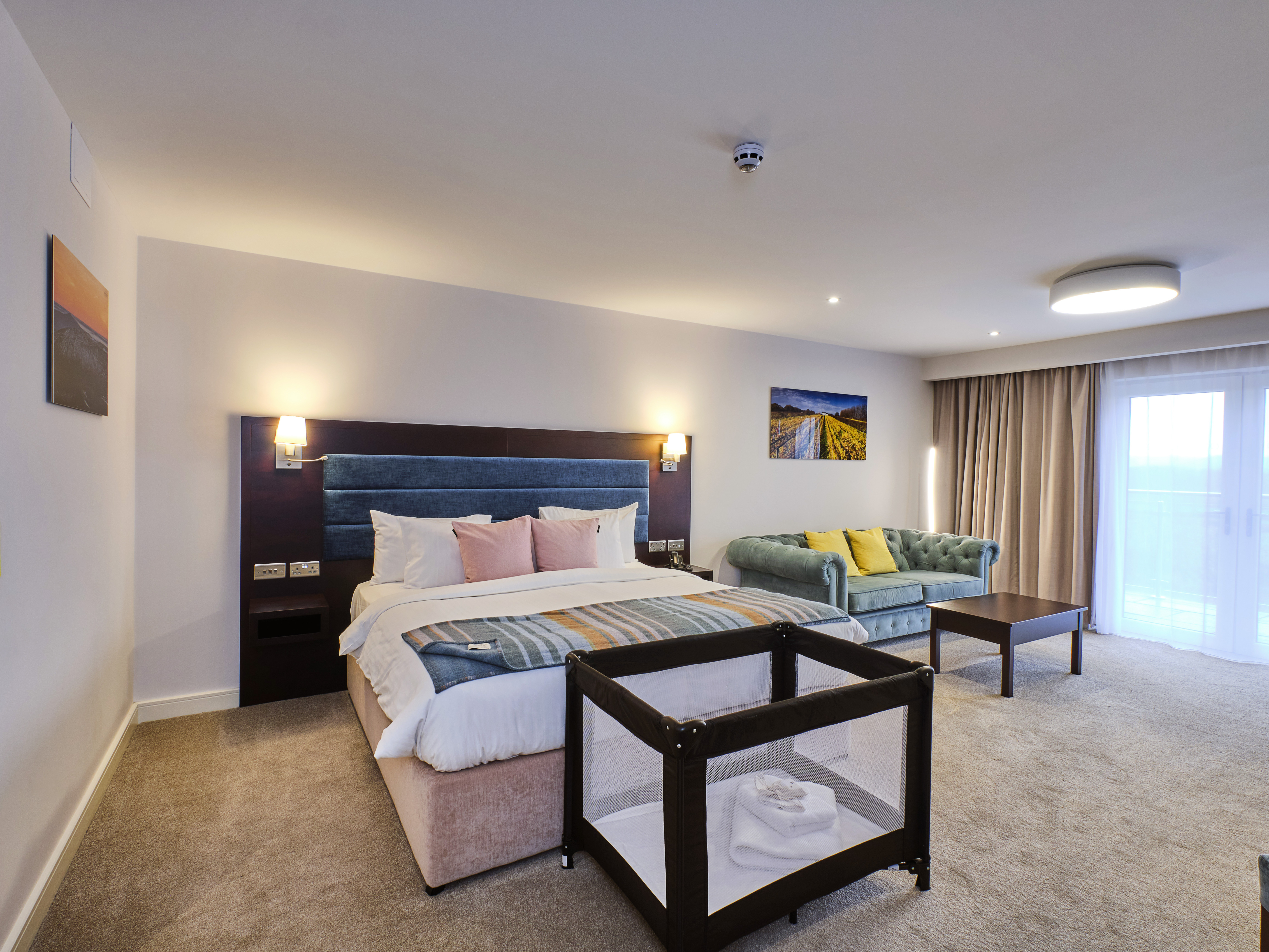 Our Family Rooms are thoughtfully designed to provide the ultimate comfort for families. Parents can relax on a luxurious super king-size Respa bed with deluxe bedding and Melin Tregwynt wool blankets, while up to two additional z-beds or a crib can be arranged for children. These spacious ground-floor rooms offer easy access and plenty of room for everyone to unwind and enjoy quality time together.